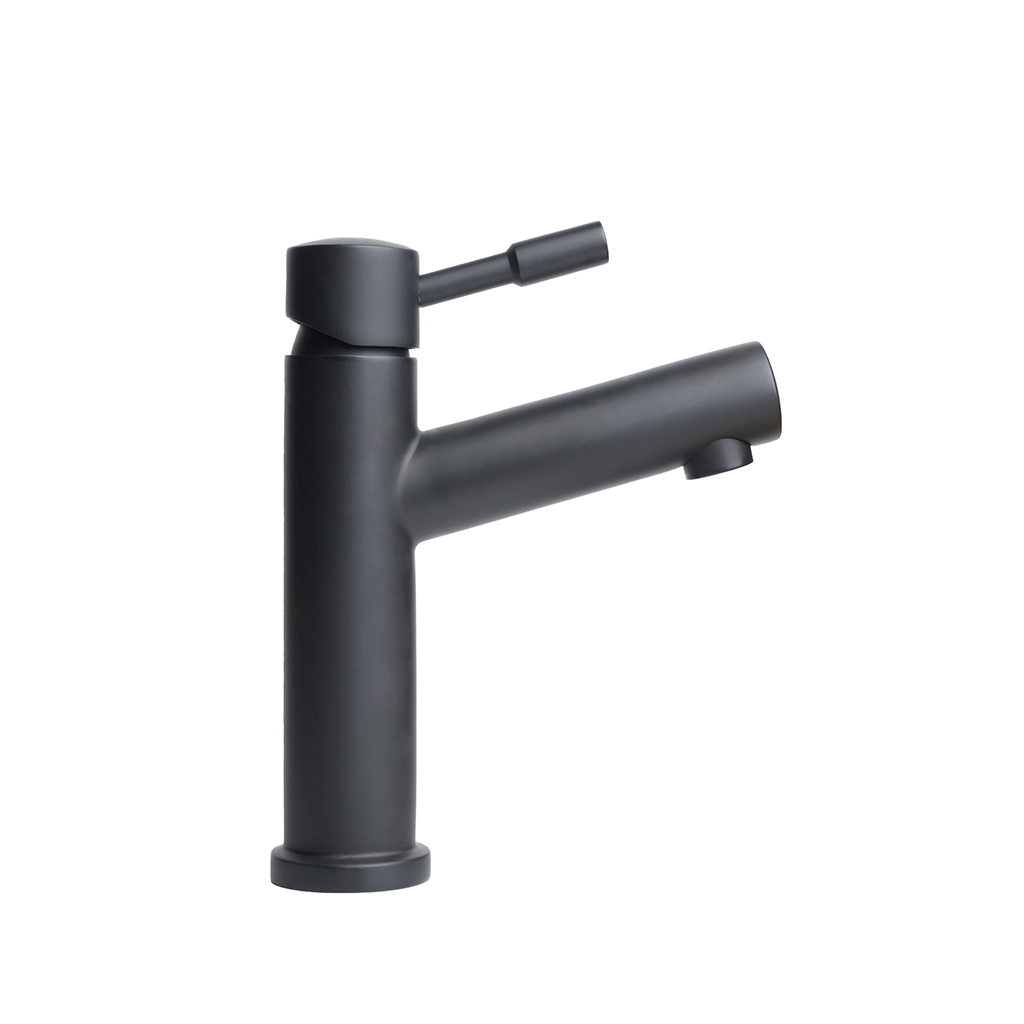 Mezcladora Para Lavamanos Cuello Bajo Negro Mate en Acero Inoxidable