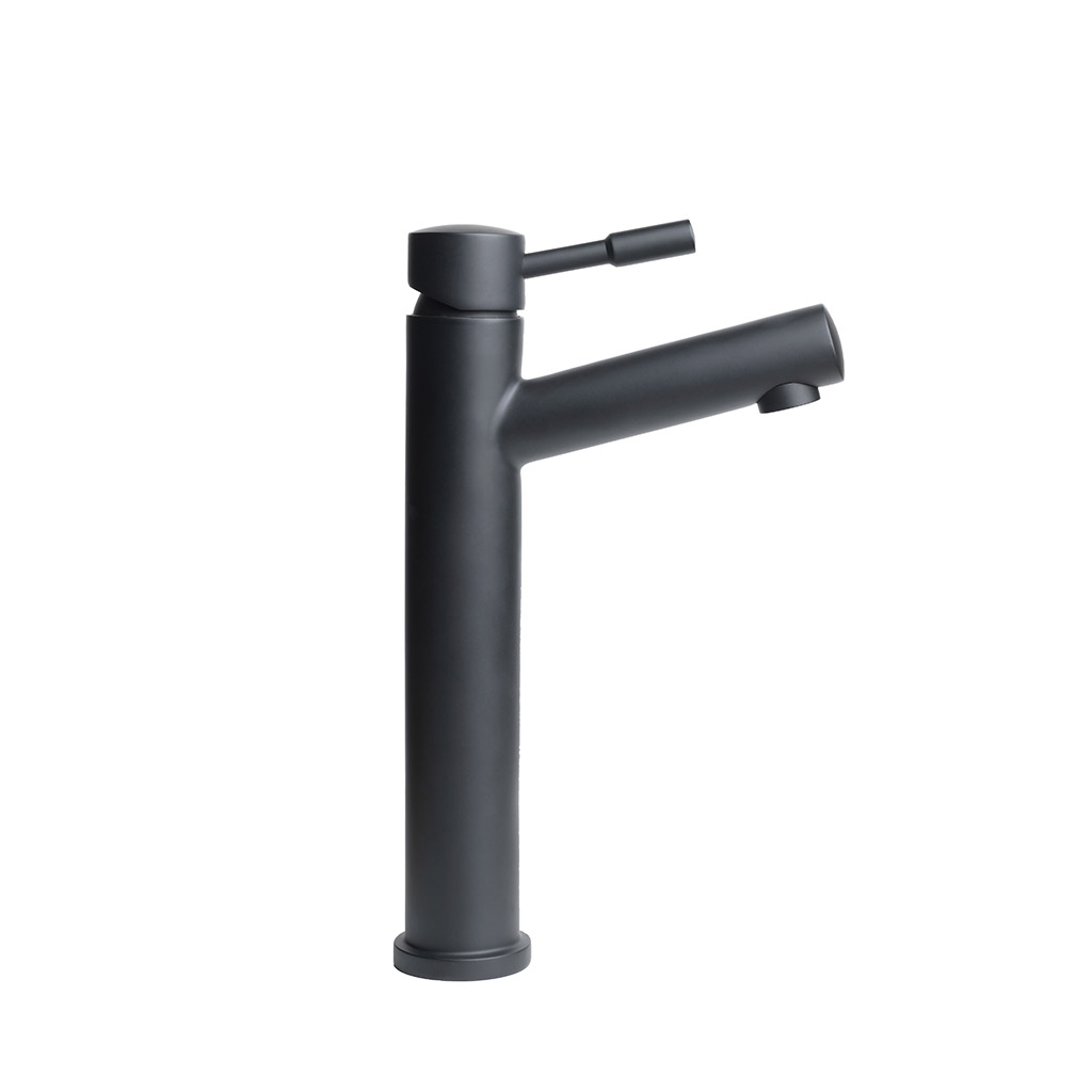 Mezcladora Para Lavamanos Cuello Alto Negro Mate en Acero Inoxidable