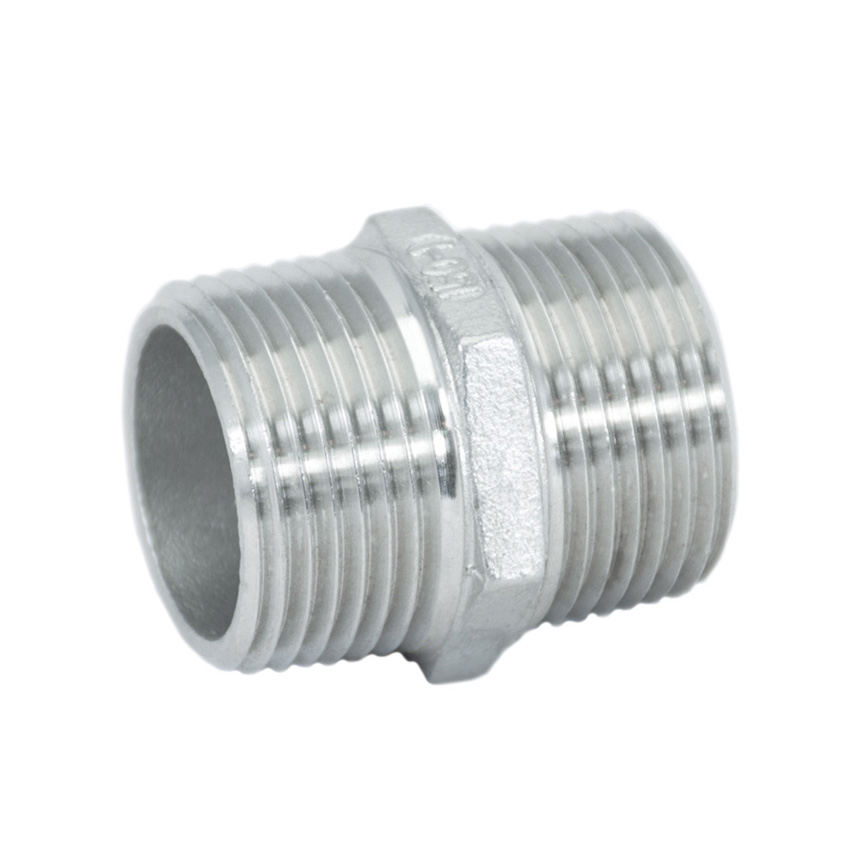 Niple hexagonal en acero inoxidable.